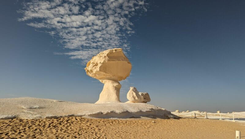 Entre la beauté des paysages sculptés par le vent et la magie des couchers de soleil qui transforment les formes et les couleurs, le Désert Blanc nous invite à une aventure au-delà du réel, là où chaque instant semble sorti d’un rêve.